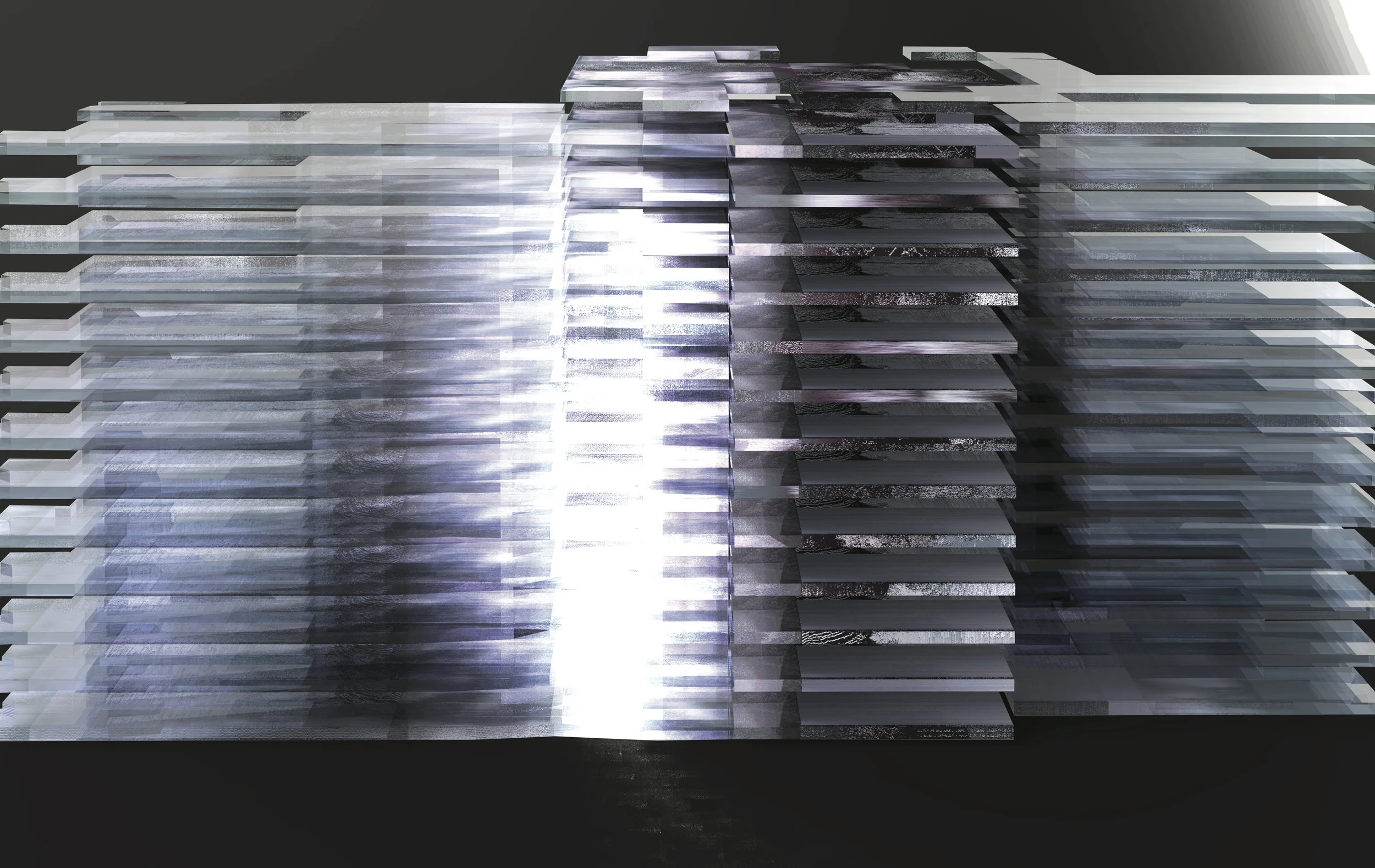 This series seeks to create inconceivable depth and materiality through the dependency of association between fields, which maintains a flickering figure/ground through the kinetic presence of densities, planes and shifting voids that congest in a central moment of disturbance, granting the viewer fleeting moments of clarity, that are immediately stolen back by the disturbance.